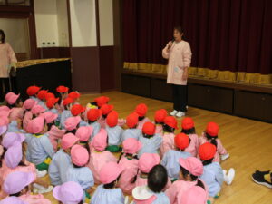久しぶりの登園でしたが、園長先生の大切なお話をしっかり聞いておりました~🤗