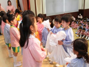 進級児と卒園児のプレゼント交換…