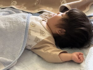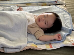 午睡の時間、0歳児クラスのお部屋に行くと…