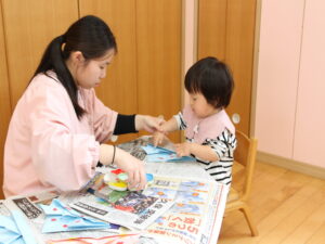 こちらは、1歳児クラスの製作の様子✨