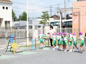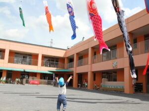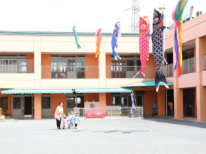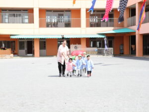 鯉のぼりに手を振りながら、2歳児クラスも登場🎏